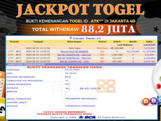 TOGEL88 JACKPOT TOGEL JAKARTA 4D Rp 88.200.000,- LUNAS MEMBER TOGEL88 MENERIMA PELUNASAN JACKPOT TOGEL JAKARTA 4D Rp 88.200.000,- LUNAS “TOGEL88 Situs Togel Online, Casino Online, […]