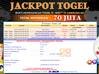 TOGEL88 JACKPOT TOGEL DI CAROLINA 4D Rp 70.000.000,- LUNAS