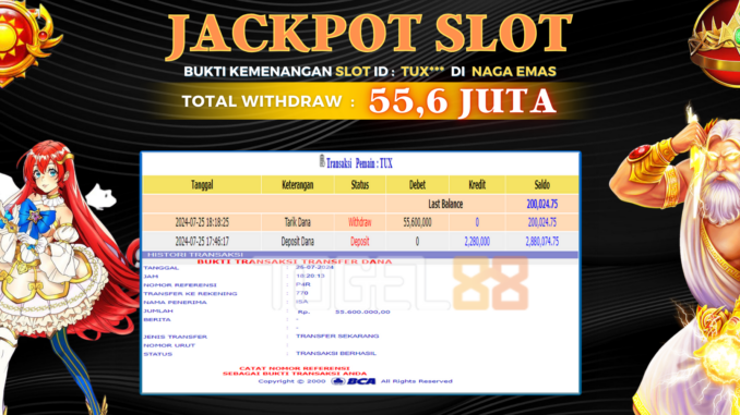 TOGEL88 JACKPOT SLOT DI NAGA EMAS Rp 55.600.000,- LUNAS