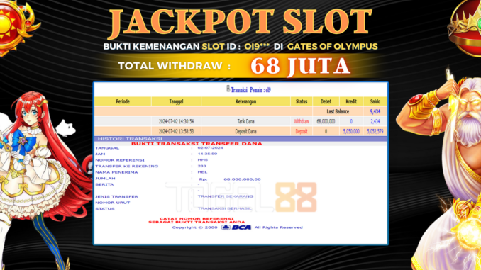 TOGEL88 JACKPOT SLOT di GATES OF OLYMPUS Rp 68.000.000,- LUNAS