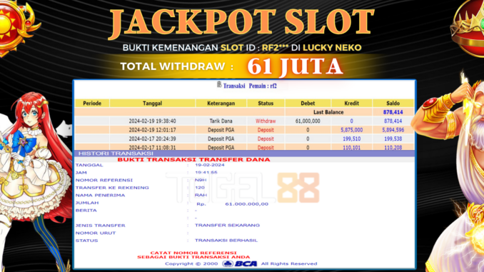 TOGEL88 JACKPOT SLOT DI LUCKY NEKO Rp 61.000.000,- LUNAS