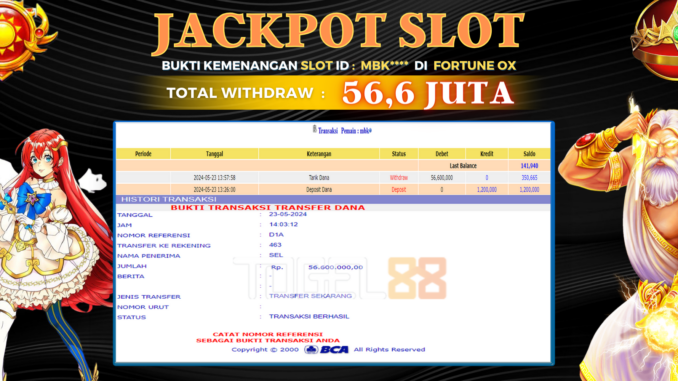 TOGEL88 JACKPOT SLOT DI FORTUNE OX Rp 56.600.000,- LUNAS
