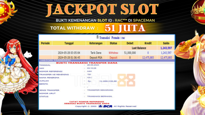 TOGEL88 JACKPOT SLOT DI SPACEMAN Rp 51.000.000,- LUNAS