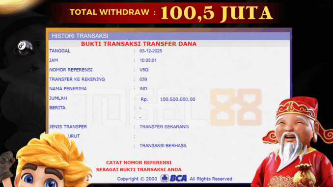 TOGEL88 mengucapkan selamat kepada user id : IND*** yang telah berhasil mendapatkan jackpot pada permainan SLOT DI SKYLIGHT WONDERS. Kemenangan sebesar Rp 100.500.000,-. telah dibayarkan LUNAS oleh pihak TOGEL88 kepada pemilik user id setelah yang bersangkutan mengisi formulir withdraw. Proses pencairan dana berlangsung sangat cepat hanya dalam waktu 5-10 menit sudah berada dalam rekening pemilik user id. Bukti transfer yang dapat anda lihat adalah bukti SAH / VALID yang langsung di dapatkan melalui bukti transaksi dari Bank yang digunakan untuk pengiriman dana pada rekening pemilik user id. Terima kasih kami sampaikan kepada para pengguna setia TOGEL88 yang telah menggunakan situs kami, sebagai Bandar Terpercaya yang pastinya membayar semua kemenangan member hingga lunas. Apakah TOGEL88 PENIPU ? Reputasi “TOGEL88 TERPERCAYA” sudah sangat melekat. puluhan hingga ratusan ribu pengguna setia TOGEL88 tetap menggunakan situs terbesar dan terbaik di Indonesia ini. Hapus rasa was-was dan khawatir anda, kemenangan anda berapapun PASTI dibayarkan hingga lunas.