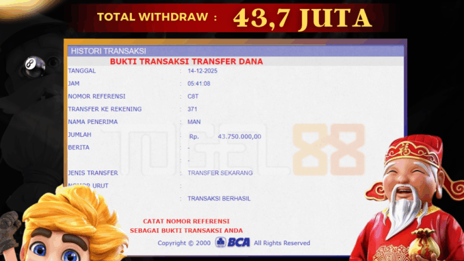 TOGEL88 mengucapkan selamat kepada user id : WAR*** yang telah berhasil mendapatkan jackpot pada permainan SLOT DI ANACONDA GOLD. Kemenangan sebesar Rp 43.750.000,-. telah dibayarkan LUNAS oleh pihak TOGEL88 kepada pemilik user id setelah yang bersangkutan mengisi formulir withdraw. Proses pencairan dana berlangsung sangat cepat hanya dalam waktu 5-10 menit sudah berada dalam rekening pemilik user id. Bukti transfer yang dapat anda lihat adalah bukti SAH / VALID yang langsung di dapatkan melalui bukti transaksi dari Bank yang digunakan untuk pengiriman dana pada rekening pemilik user id. Terima kasih kami sampaikan kepada para pengguna setia TOGEL88 yang telah menggunakan situs kami, sebagai Bandar Terpercaya yang pastinya membayar semua kemenangan member hingga lunas. Apakah TOGEL88 PENIPU ? Reputasi “TOGEL88 TERPERCAYA” sudah sangat melekat. puluhan hingga ratusan ribu pengguna setia TOGEL88 tetap menggunakan situs terbesar dan terbaik di Indonesia ini. Hapus rasa was-was dan khawatir anda, kemenangan anda berapapun PASTI dibayarkan hingga lunas.