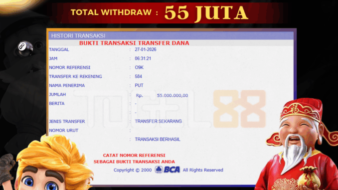 TOGEL88 mengucapkan selamat kepada user id : OMI*** yang telah berhasil mendapatkan jackpot pada permainan SLOT DI SLOT MANIA PRINCESS. Kemenangan sebesar Rp 55.000.000,-. telah dibayarkan LUNAS oleh pihak TOGEL88 kepada pemilik user id setelah yang bersangkutan mengisi formulir withdraw. Proses pencairan dana berlangsung sangat cepat hanya dalam waktu 5-10 menit sudah berada dalam rekening pemilik user id. Bukti transfer yang dapat anda lihat adalah bukti SAH / VALID yang langsung di dapatkan melalui bukti transaksi dari Bank yang digunakan untuk pengiriman dana pada rekening pemilik user id. Terima kasih kami sampaikan kepada para pengguna setia TOGEL88 yang telah menggunakan situs kami, sebagai Bandar Terpercaya yang pastinya membayar semua kemenangan member hingga lunas. Apakah TOGEL88 PENIPU ? Reputasi “TOGEL88 TERPERCAYA” sudah sangat melekat. puluhan hingga ratusan ribu pengguna setia TOGEL88 tetap menggunakan situs terbesar dan terbaik di Indonesia ini. Hapus rasa was-was dan khawatir anda, kemenangan anda berapapun PASTI dibayarkan hingga lunas.