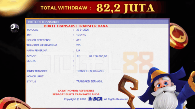 TOGEL88 mengucapkan selamat kepada user id : JOV*** yang telah berhasil mendapatkan jackpot pada permainan LIVE CASINO DI SICBO BALL. Kemenangan sebesar Rp 82.200.000,-. telah dibayarkan LUNAS oleh pihak TOGEL88 kepada pemilik user id setelah yang bersangkutan mengisi formulir withdraw. Proses pencairan dana berlangsung sangat cepat hanya dalam waktu 5-10 menit sudah berada dalam rekening pemilik user id. Bukti transfer yang dapat anda lihat adalah bukti SAH / VALID yang langsung di dapatkan melalui bukti transaksi dari Bank yang digunakan untuk pengiriman dana pada rekening pemilik user id. Terima kasih kami sampaikan kepada para pengguna setia TOGEL88 yang telah menggunakan situs kami, sebagai Bandar Terpercaya yang pastinya membayar semua kemenangan member hingga lunas. Apakah TOGEL88 PENIPU ? Reputasi “TOGEL88 TERPERCAYA” sudah sangat melekat. puluhan hingga ratusan ribu pengguna setia TOGEL88 tetap menggunakan situs terbesar dan terbaik di Indonesia ini. Hapus rasa was-was dan khawatir anda, kemenangan anda berapapun PASTI dibayarkan hingga lunas.