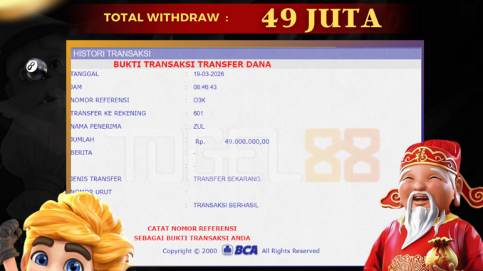 TOGEL88 mengucapkan selamat kepada user id : CIU*** yang telah berhasil mendapatkan jackpot pada permainan SLOT DI KOI GATE. Kemenangan sebesar Rp 49.000.000,-. telah dibayarkan LUNAS oleh pihak TOGEL88 kepada pemilik user id setelah yang bersangkutan mengisi formulir withdraw. Proses pencairan dana berlangsung sangat cepat hanya dalam waktu 5-10 menit sudah berada dalam rekening pemilik user id. Bukti transfer yang dapat anda lihat adalah bukti SAH / VALID yang langsung di dapatkan melalui bukti transaksi dari Bank yang digunakan untuk pengiriman dana pada rekening pemilik user id. Terima kasih kami sampaikan kepada para pengguna setia TOGEL88 yang telah menggunakan situs kami, sebagai Bandar Terpercaya yang pastinya membayar semua kemenangan member hingga lunas. Apakah TOGEL88 PENIPU ? Reputasi “TOGEL88 TERPERCAYA” sudah sangat melekat. puluhan hingga ratusan ribu pengguna setia TOGEL88 tetap menggunakan situs terbesar dan terbaik di Indonesia ini. Hapus rasa was-was dan khawatir anda, kemenangan anda berapapun PASTI dibayarkan hingga lunas.
