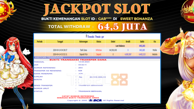 TOGEL88 JACKPOT SLOT DI SWEET BONANZA Rp 64.500.000,- LUNAS