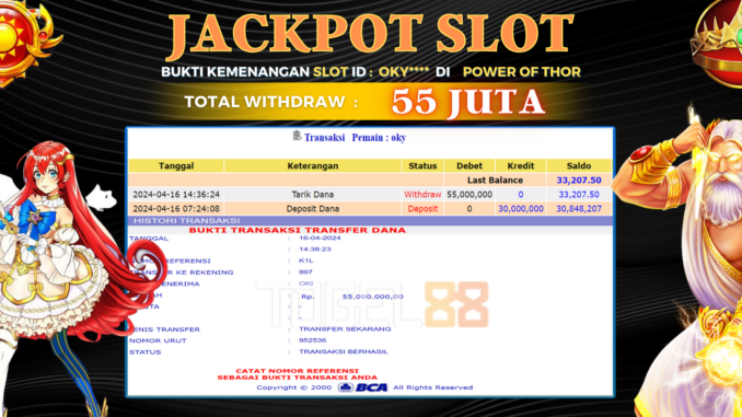 TOGEL88 JACKPOT SLOT DI POWER OF THOR Rp 55.000.000,- LUNAS