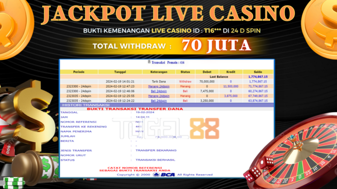TOGEL88 JACKPOT LIVE CASINO DI ROULETTE Rp 70.000.000,- LUNAS
